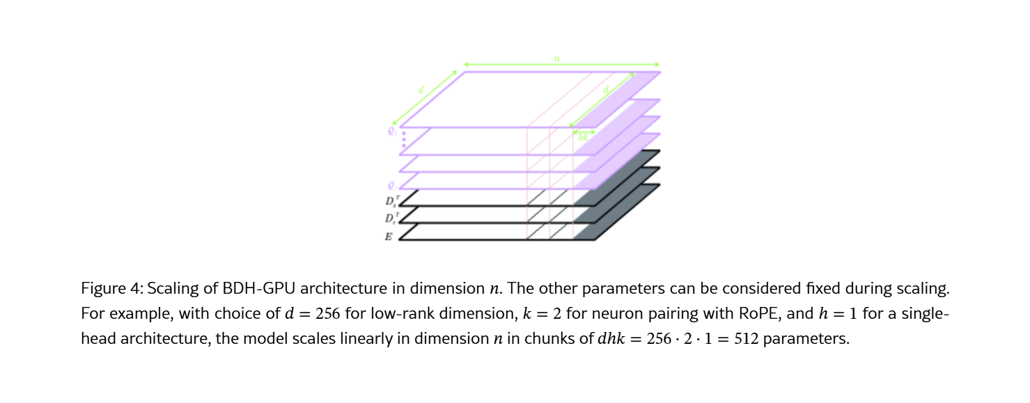 原文里面引用了好多生物大脑的名词,拿翻译器也看不懂所以忽略了,只从机器学习来看,BDH的BDH-GPU变体,是一种具有稀疏低秩约束的线性递归状态空间模型,它在数学上架起了GNN与稠密Transformer,提供了一种在保持高性能的同时将复杂度降低至O(N)的方案。